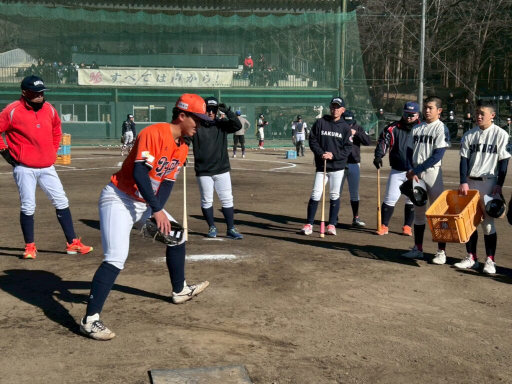 そして福士選手野球教室へ!・・9期生先輩達から守備に!打撃に!・・手とり足とり・・丁寧に教えて頂きました!